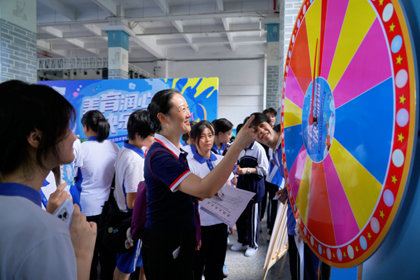 活动现场,同学们手持任务卡穿梭于各个摊位,时而驻足欣赏,时而动手体验,时而热烈交流。每一个专注的眼神,每一次会心的微笑,都是美育浸润的最佳证明。