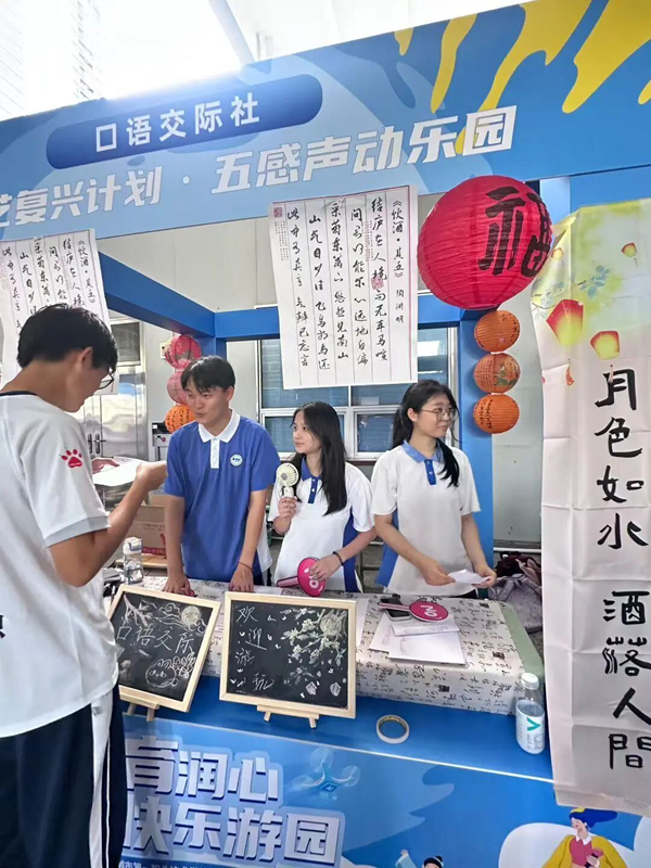 社团创意区同样精彩纷呈。艺术类社团的“光影绘梦”、表演类社团的“舞动青春”、科技类社团的“无人机展示”、文化知识类社团的“逻辑推理挑战”,以及茶艺社、园艺社的雅致展示,共同构成了一场美育的盛宴。