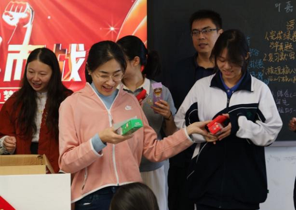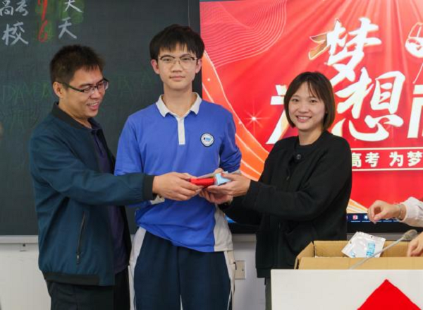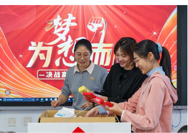 随后,艺术设计部高三年级班主任逐一为同学们递上定制书签,并贴上“金榜题名”祝福语,他们与同学们亲切交流,细致询问备考状态,耐心解答同学的困惑。